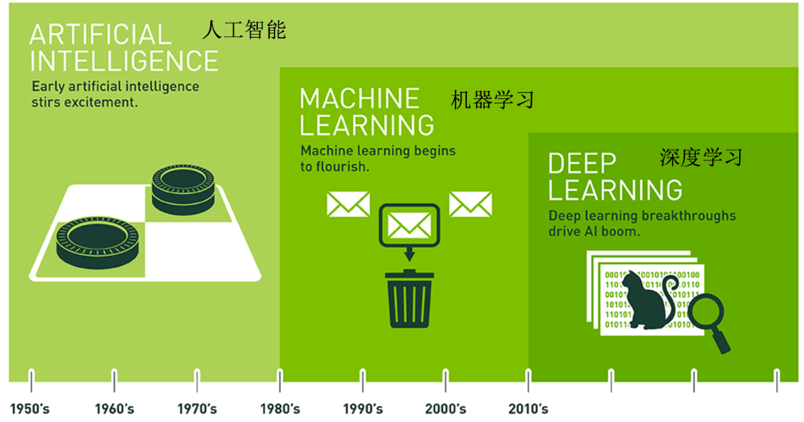 1.3 人工智能,机器学习,深度学习关系 机器学习是人工智能的一个实现途径;深度学习是机器学习的一个方法发展而来