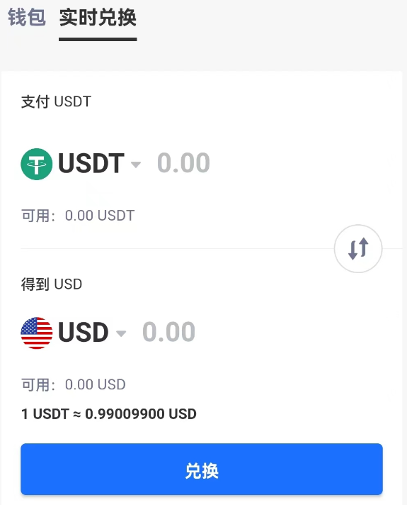 提现到Depay成功后,点击Depay App钱包——实时兑换,将所有的USDT都兑换成USD美元