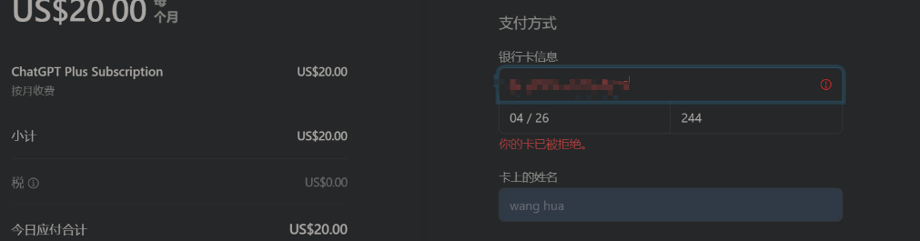 解决方案:再确保虚拟卡正确的情况下,更改账单地址,(开始使用美国账单)后来改到日本后就成功了