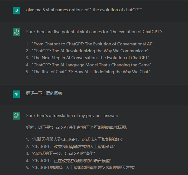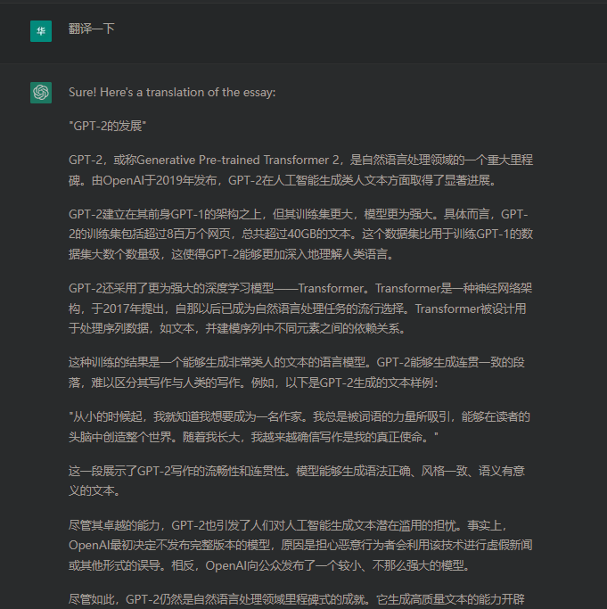 一篇的讲ChatGPT的文章就诞生了哦,AI的生成能力,翻译能力好强