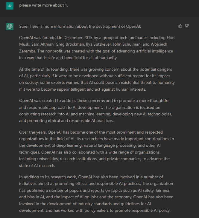 2.1 写第一点 在以上这个问题的回复后直接问: please write more about 1.