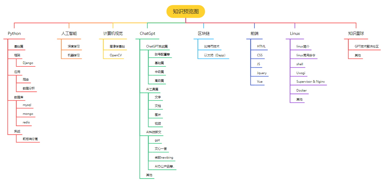 技术栈:内容涉及gpt使用,人工智能,python后端开发,区块链,前端,Linux,服务器部署等等