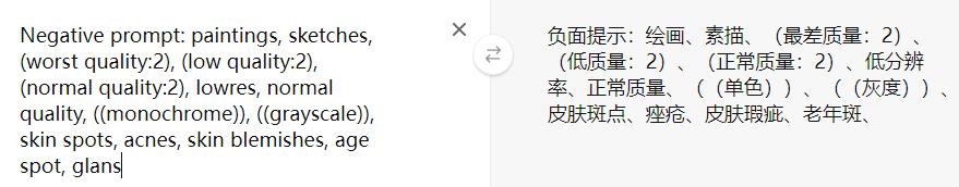 第二个框:反向提示词Negative prompt,意思就是你输入的词不出现