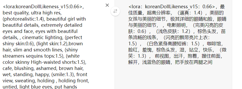 lora:koreanDollLikeness_v15:0.66, best quality, ultra high res, (photorealistic:1.4) 前以后可不用动,而后面的提示词根据自己喜欢来更换,或者借助gpt生成
