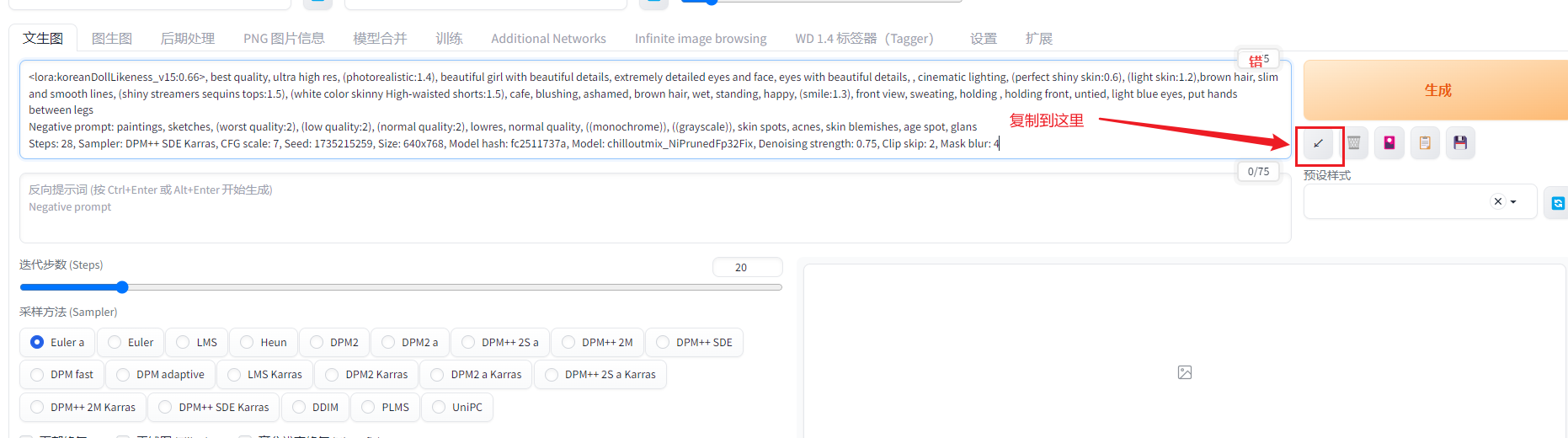 左上角的模型选成ChilloutMix