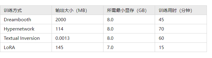 目前主流训练方式为前两种 Dreambooth 和 LoRA(以及 LoRA 的变体 LyCORIS);训练时间与实用度而言,目前应是 LoRA > HyperNetwork > Embedding