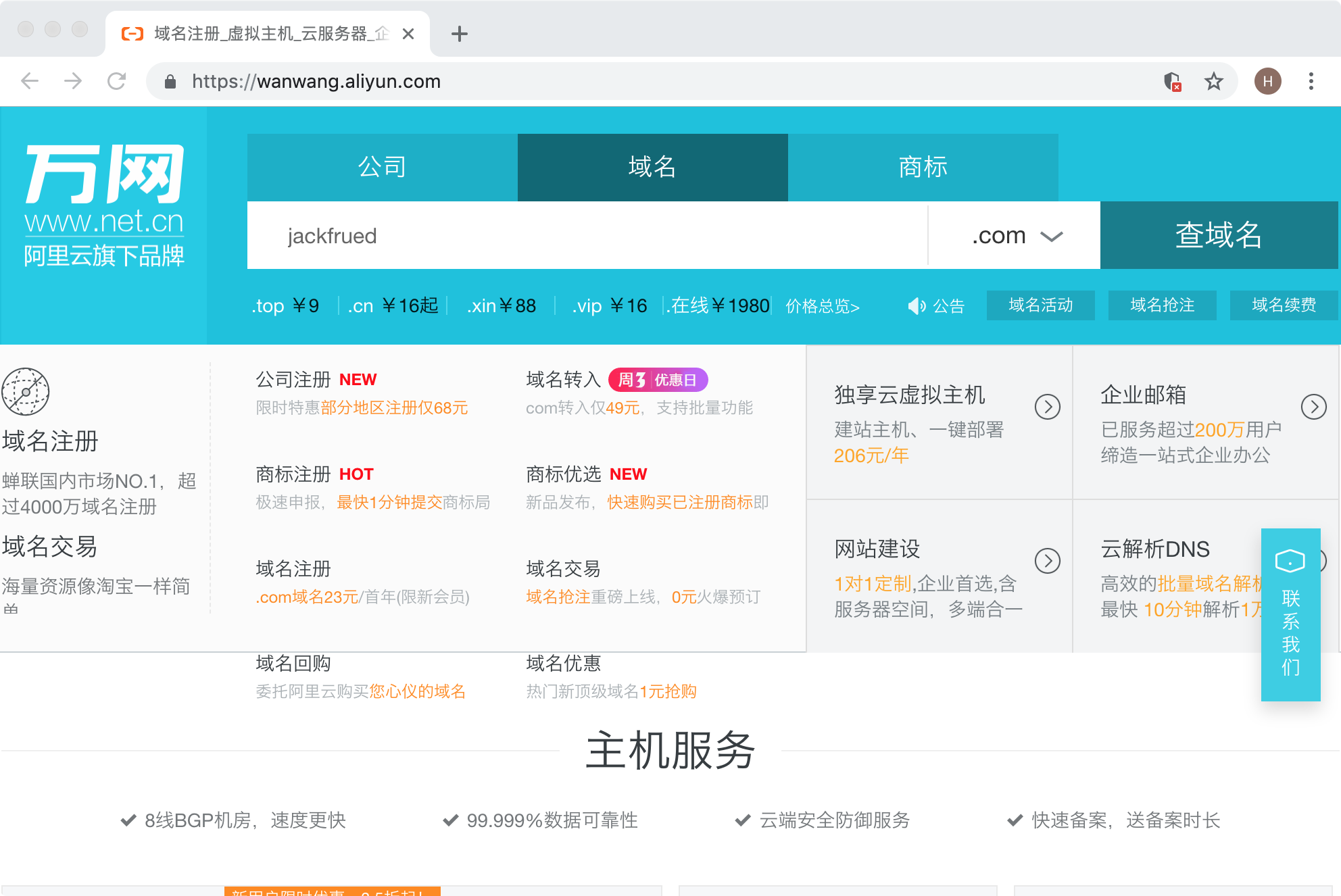 说明:目前国内对域名的管理日趋严格,在购买域名时需要填写一大堆的个人信息,进行实名认证后才能获得域名,这一点相信大家能够理解。